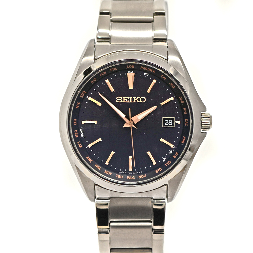 セイコー Seiko SBTM293 セイコーコレクション ソーラー電波 ブラック 腕時計 チタン メンズ【中古】