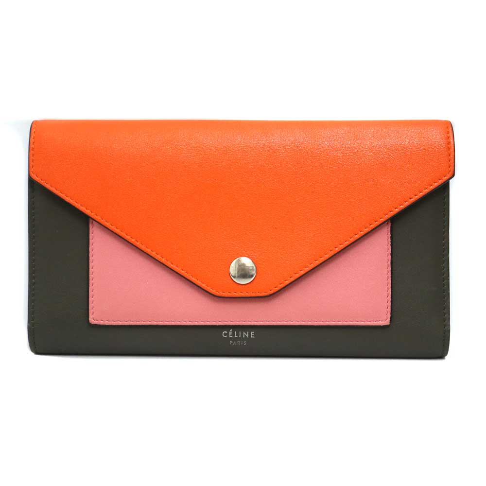 セリーヌ Celine 105853AD4.20BG ポケット トリフォールド マルチファンクション 長財布 レディース レザー オレンジ系【中古】