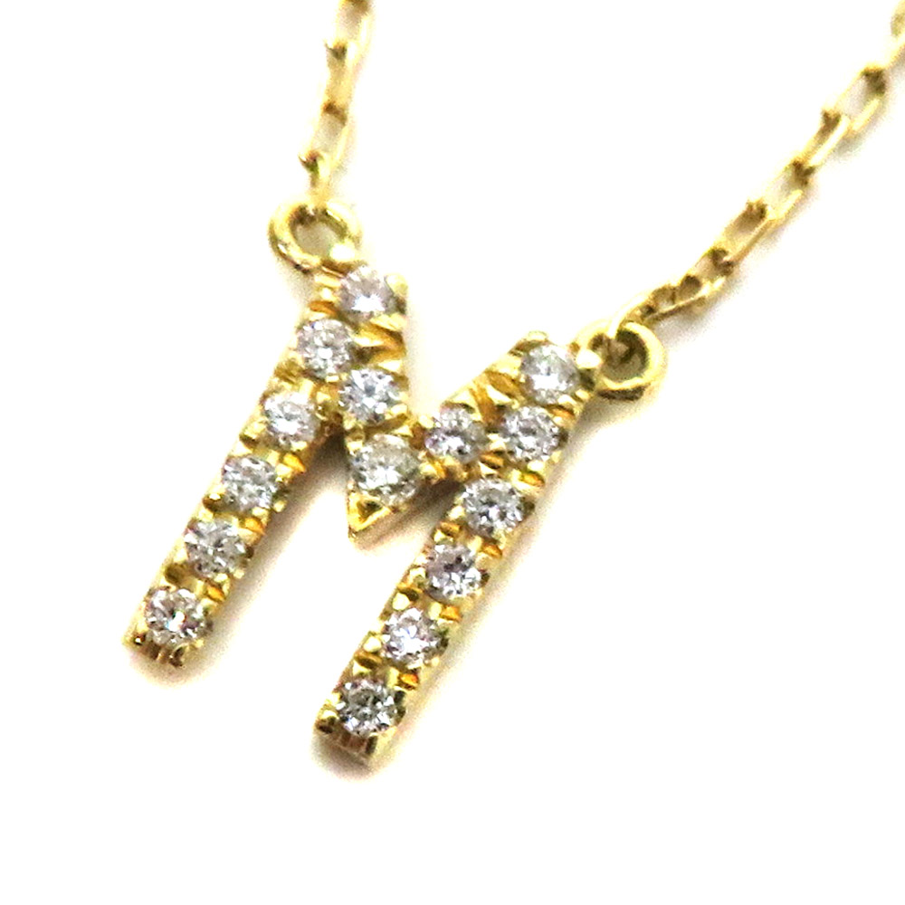 アーカー Ahkah D0.06ctイニシャル「M」ネックレス K18 ダイヤモンド ジュエリー 【中古】