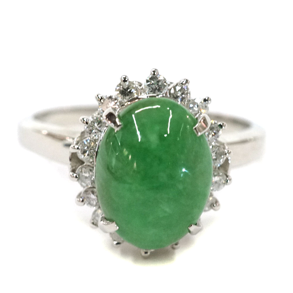 Pt850 プラチナ リング 指輪 ダイヤモンド0.33ct ヒスイ1.83ct【中古】