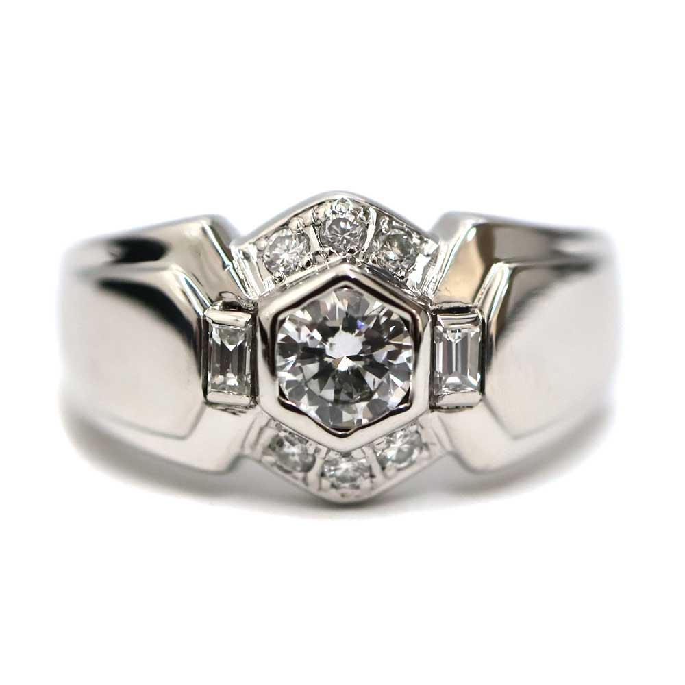 Pt900 プラチナ900 ダイヤモンド リング メンズ シルバーカラー 指輪 ジュエリー【中古】