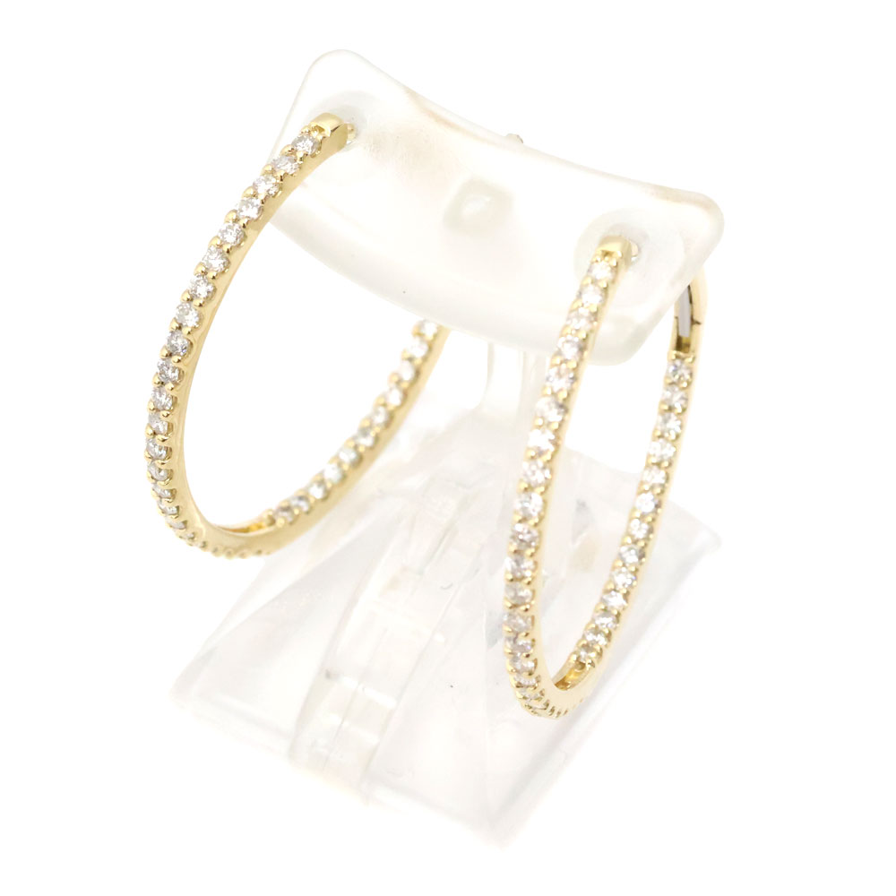K18 18金 ダイヤモンド付フープピアス イエローゴールド レディース ジュエリー アクセサリー【中古】
