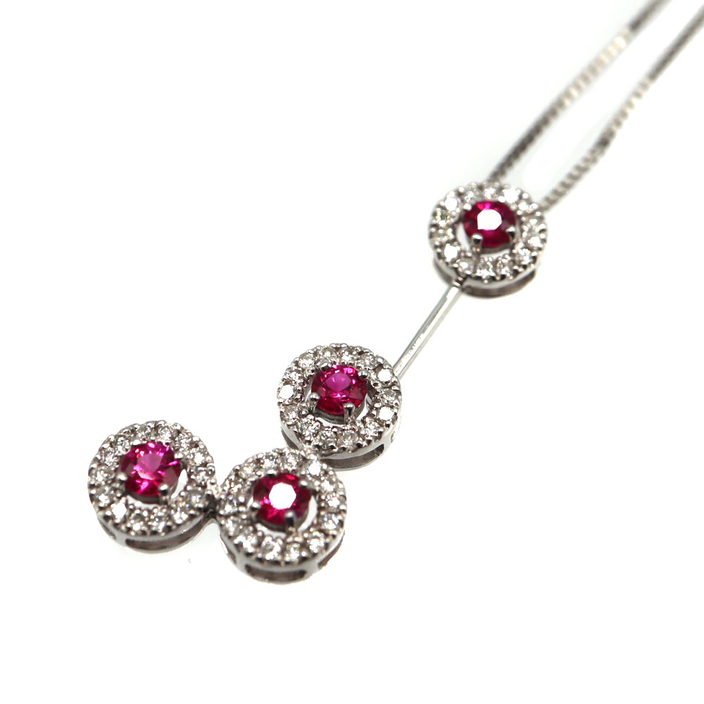 18金 ホワイトゴールド K18WG ルビー0.35ct ダイヤモンド0.48ct レディース ネックレス ジュエリー【中古】