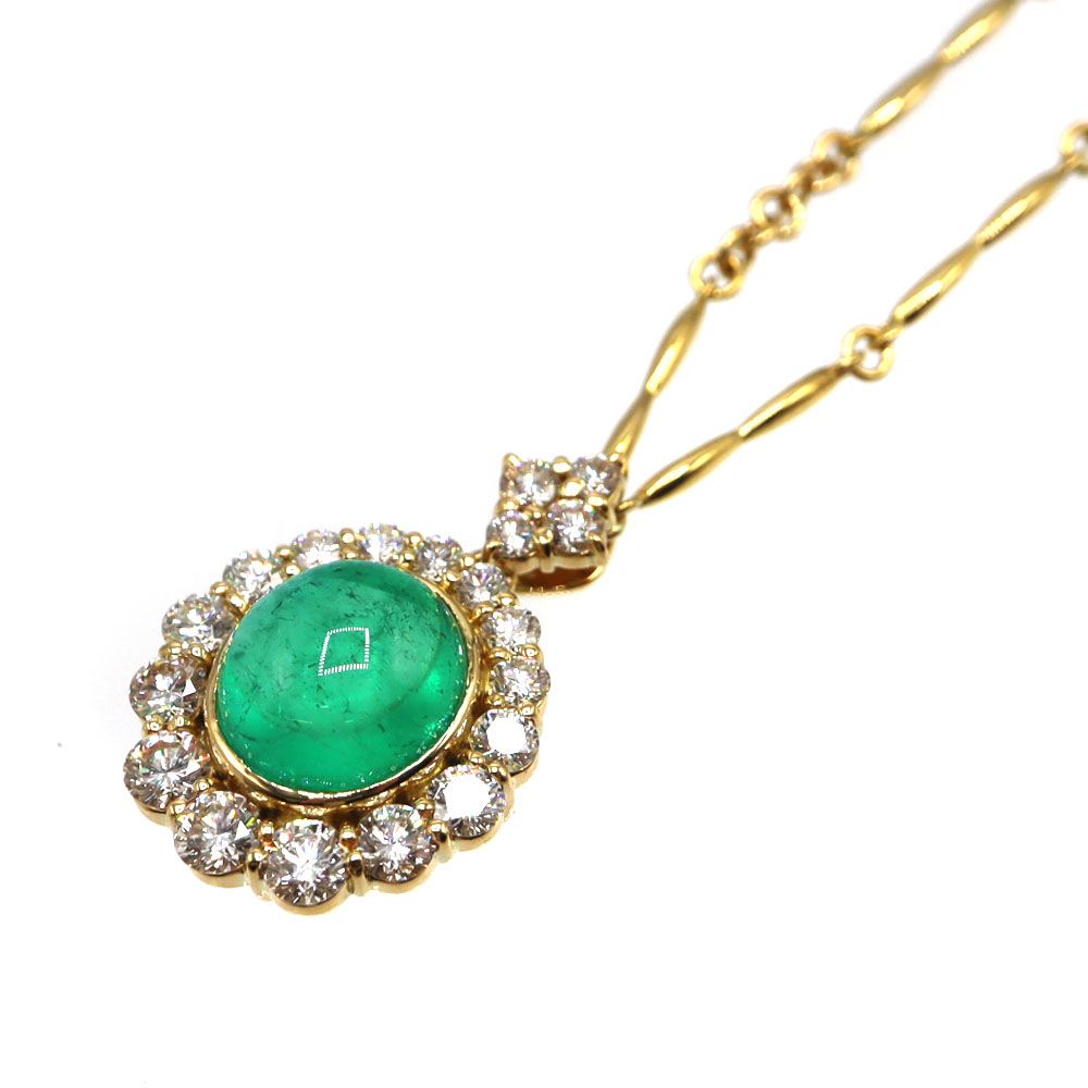 K18 18金 ゴールド E4.26ct D1.48ct ネックレス エメラルド ダイヤモンド レディース【中古】