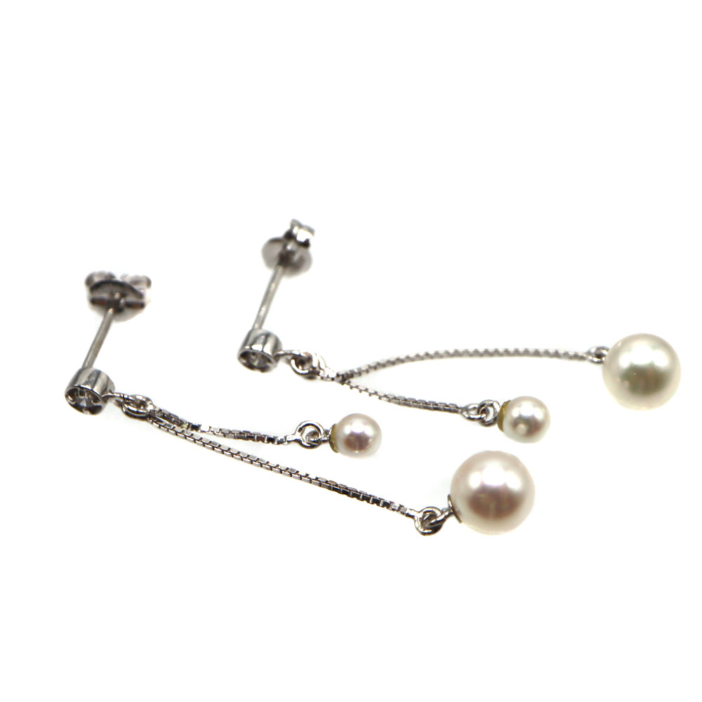 K18WG 18金ホワイトゴールド パールD0.02ctピアス アコヤ養殖真珠 ダイヤモンド レディース アクセサリー ジュエリー【中古】