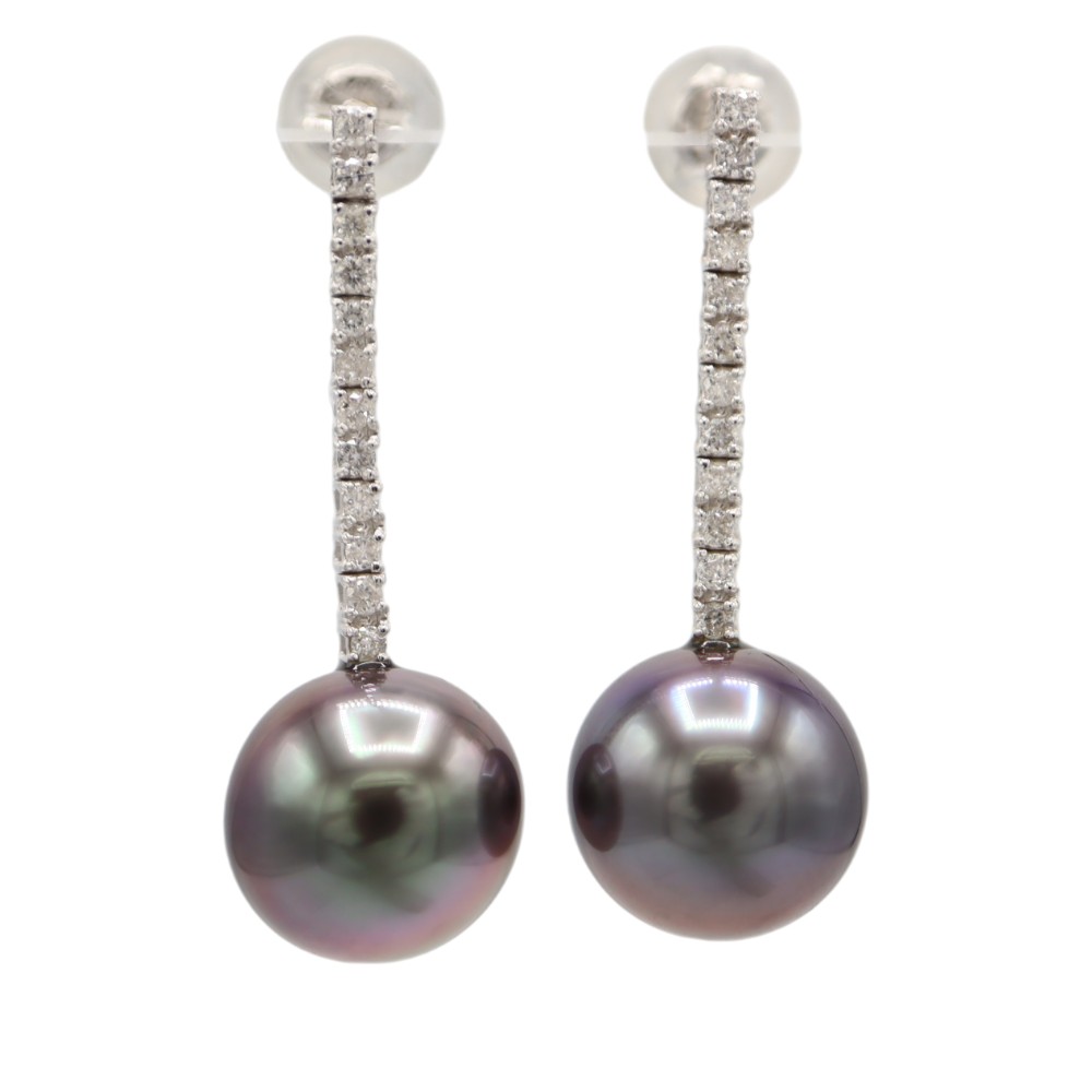 K18WG 18金ホワイトゴールド ブラックパール ダイヤモンド ピアス ジュエリー レディース【中古】