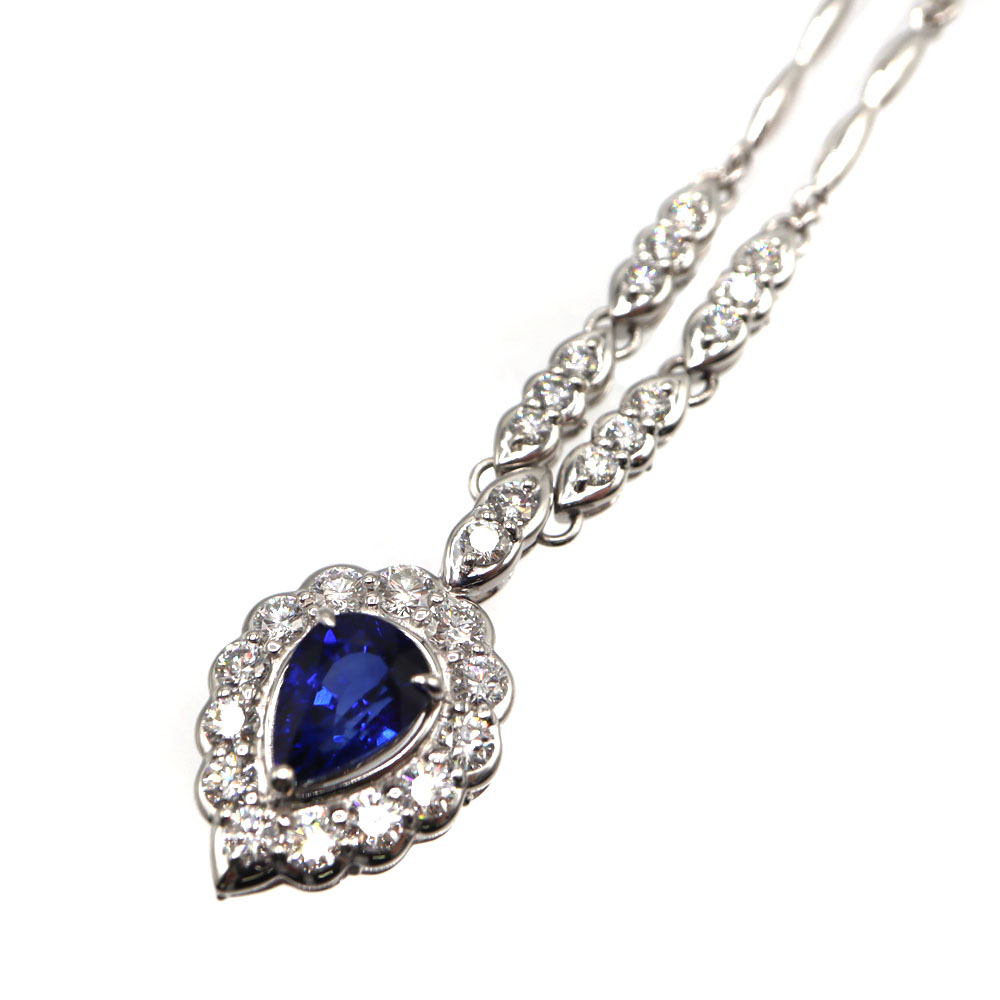 Pt850 Pt900 プラチナ サファイア ネックレス D1.11ct ダイヤモンド ジュエリー レディース【中古】