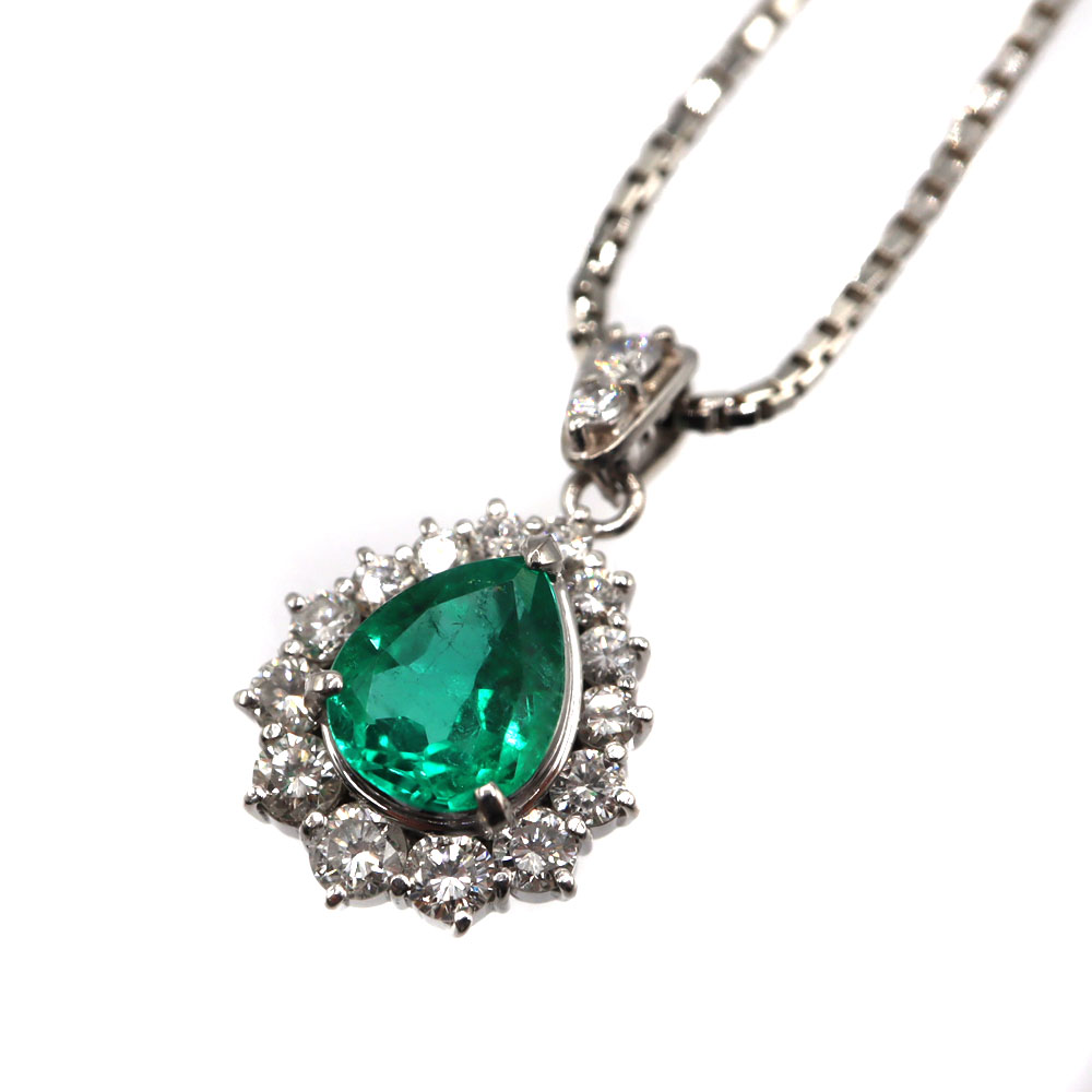 Pt850 Pt900 プラチナ エメラルド ネックレス D0.76ct ダイヤモンド ジュエリー レディース【中古】