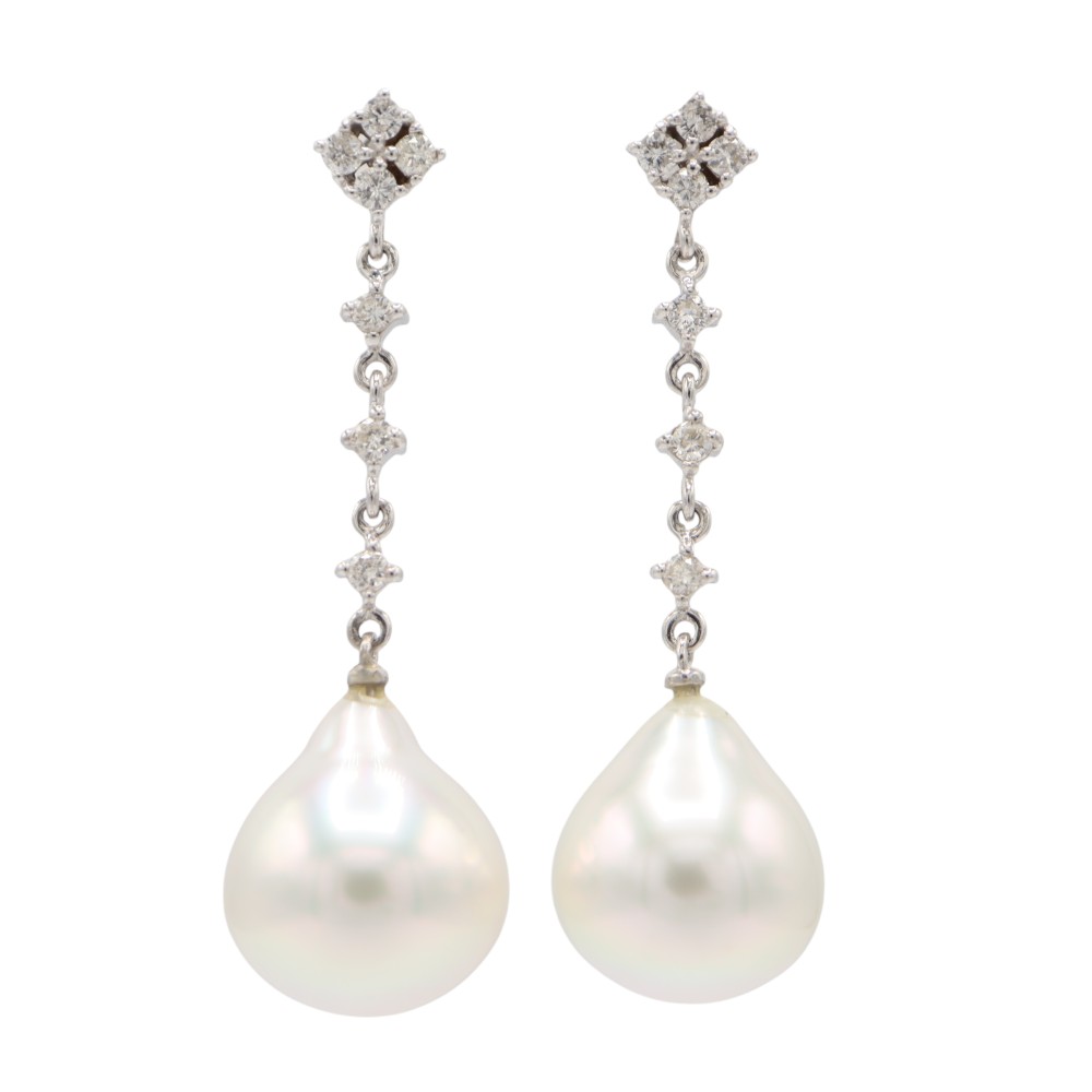 K18WG 18金ホワイトゴールド パール ダイヤモンド ピアス ジュエリー レディース【中古】