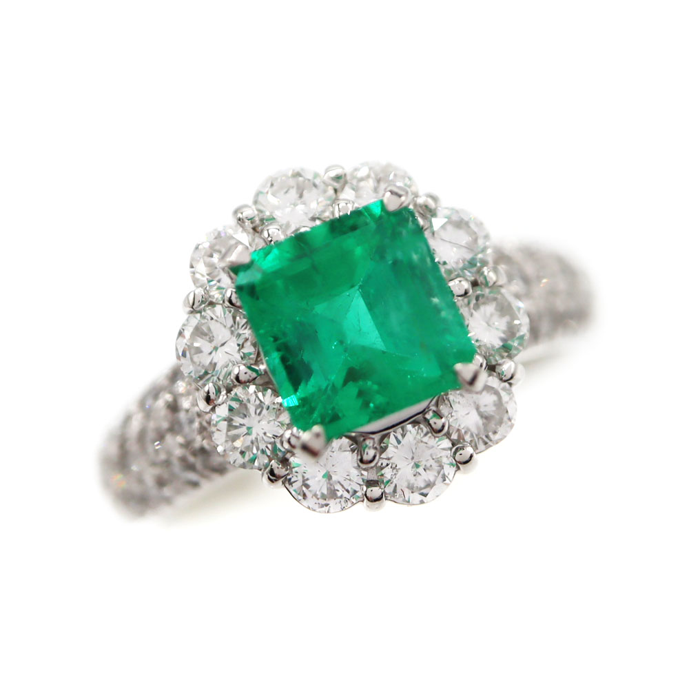 Pt900 プラチナ エメラルド リング D1.25ct ダイヤモンド 指輪 ジュエリー レディース【中古】