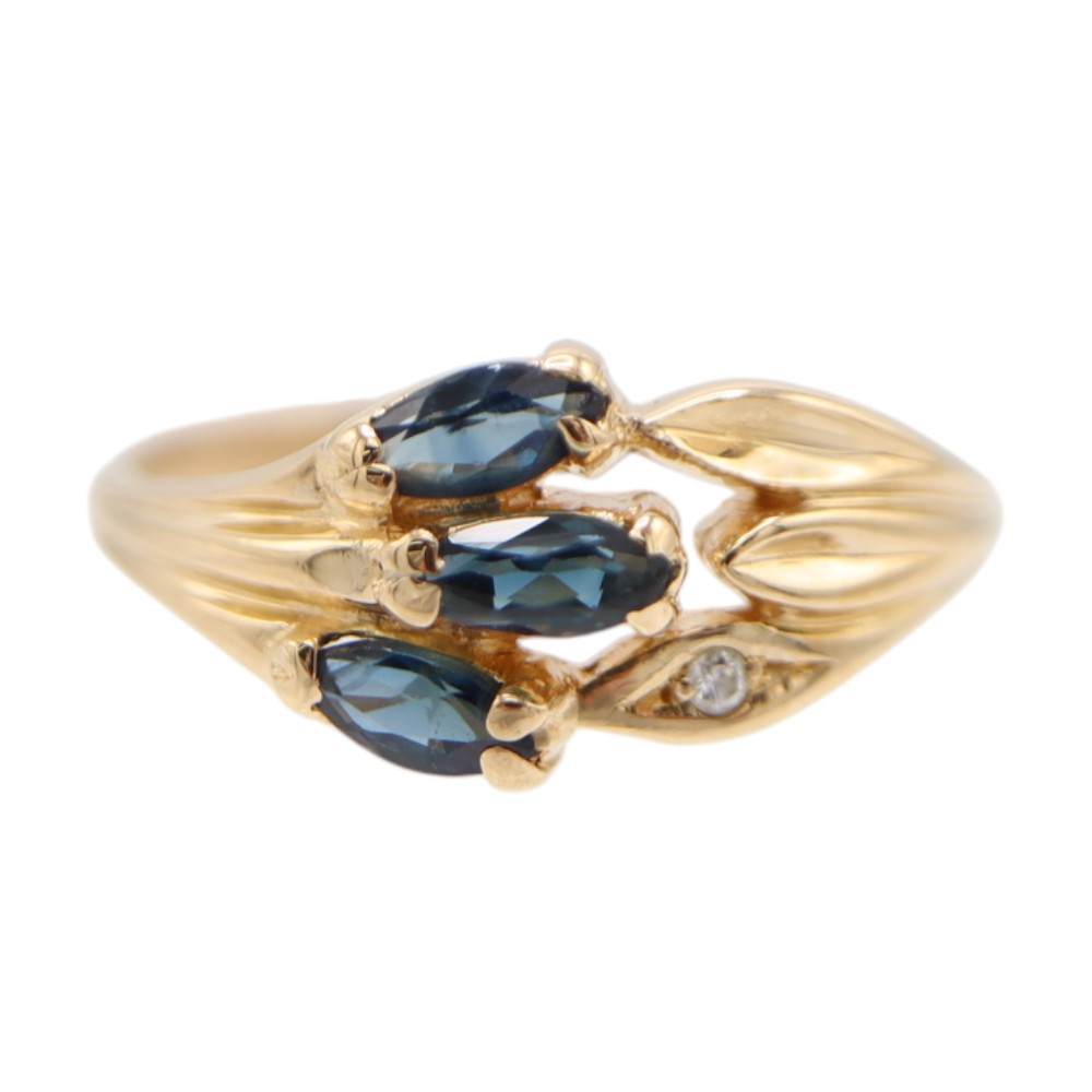 K18YG 18金イエローゴールド サファイア ダイヤモンド リング レディース ゴールド【中古】