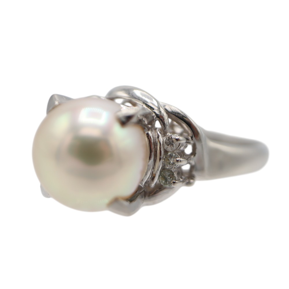 Pt900 プラチナ900 パール ダイヤモンドリング レディース シルバー【中古】