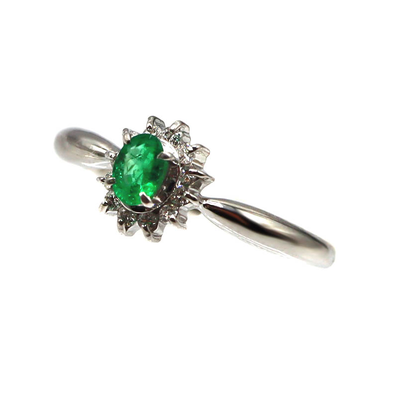 Pt900 プラチナ E0.06ct ダイヤ付リング 指輪 エメラルド ダイヤモンド レディース【中古】