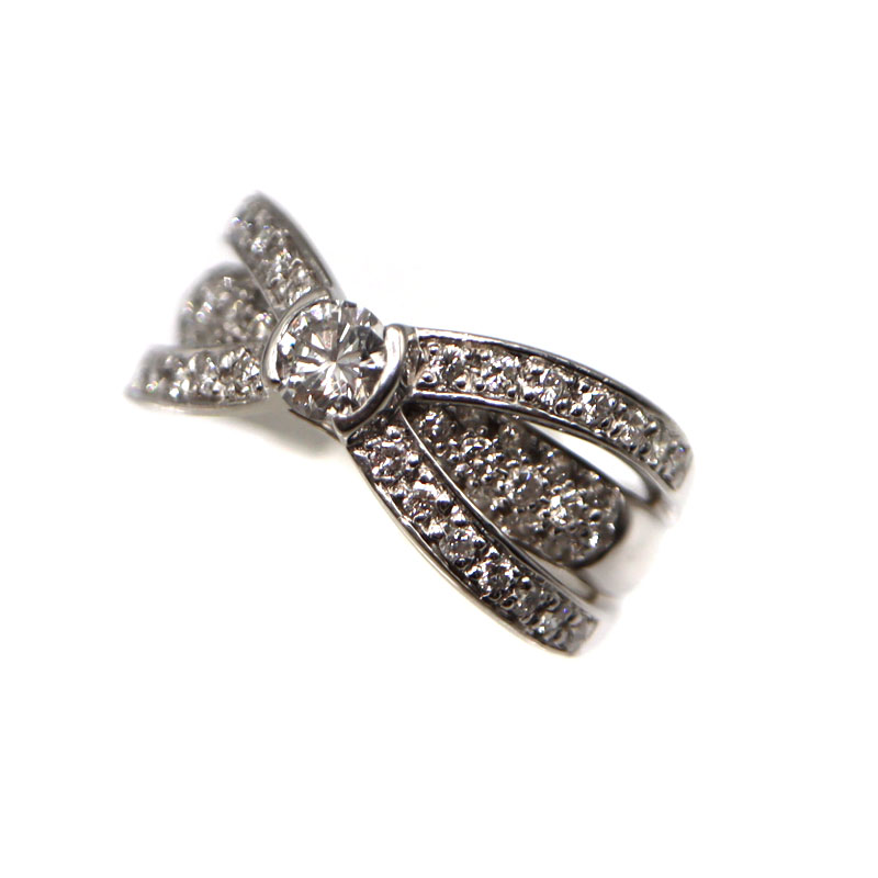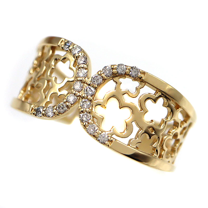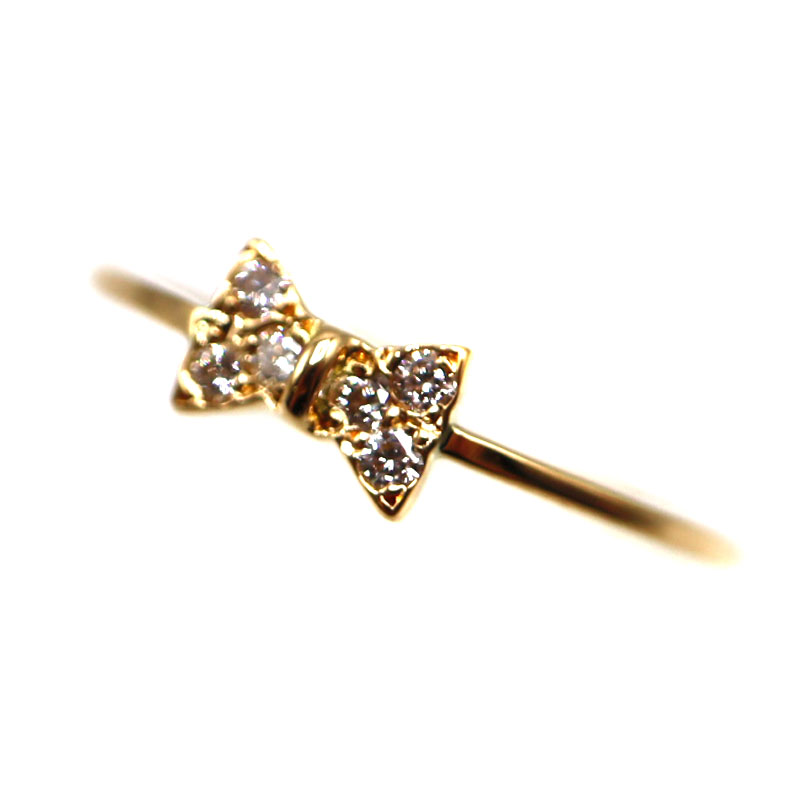 K18 D0.06ctリング 指輪 ゴールド ダイヤモンド リボン レディース 【中古】