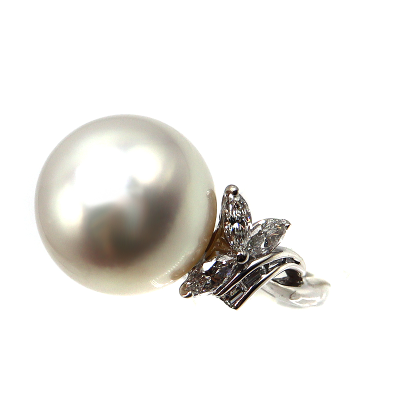プラチナ900 Pt900 シロチョウパール/D0.75ct リング 指輪 シロチョウ養殖真珠 ダイヤモンド レディース プラチナ【中古】