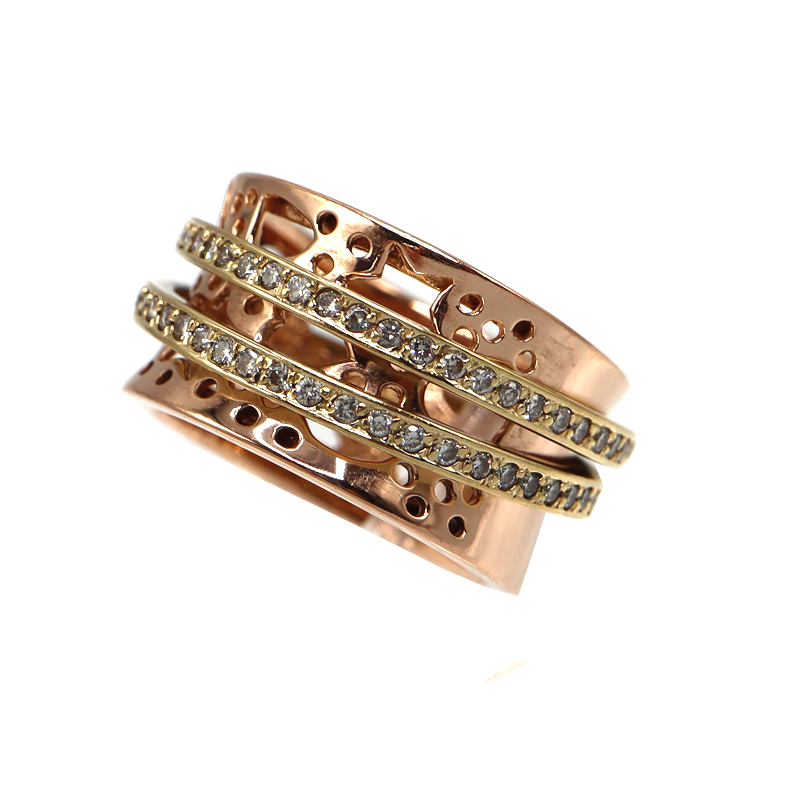 K18PG 18金 D0.65ctリング ピンクゴールド K18YG イエローゴールド ダイヤモンド レディース【中古】