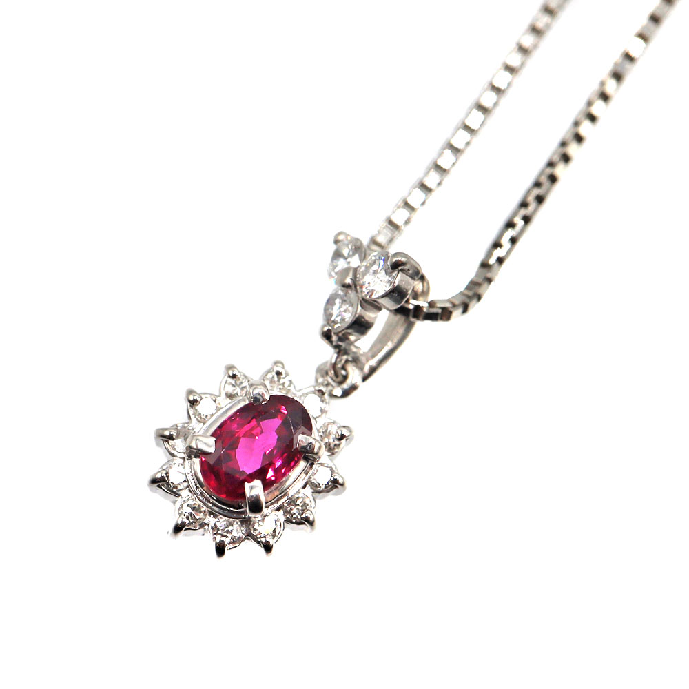 プラチナ850 Pt850 プラチナ900 Pt900 R0.43ct/D0.22ctネックレス ダイヤモンド ルビー ネックレス ジュエリー 【中古】