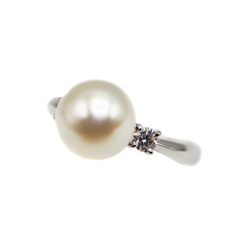 Pt900 プラチナ パール/D0.18ctリング アコヤ養殖真珠 ダイヤモンド シルバー 指輪 ジュエリー【中古】