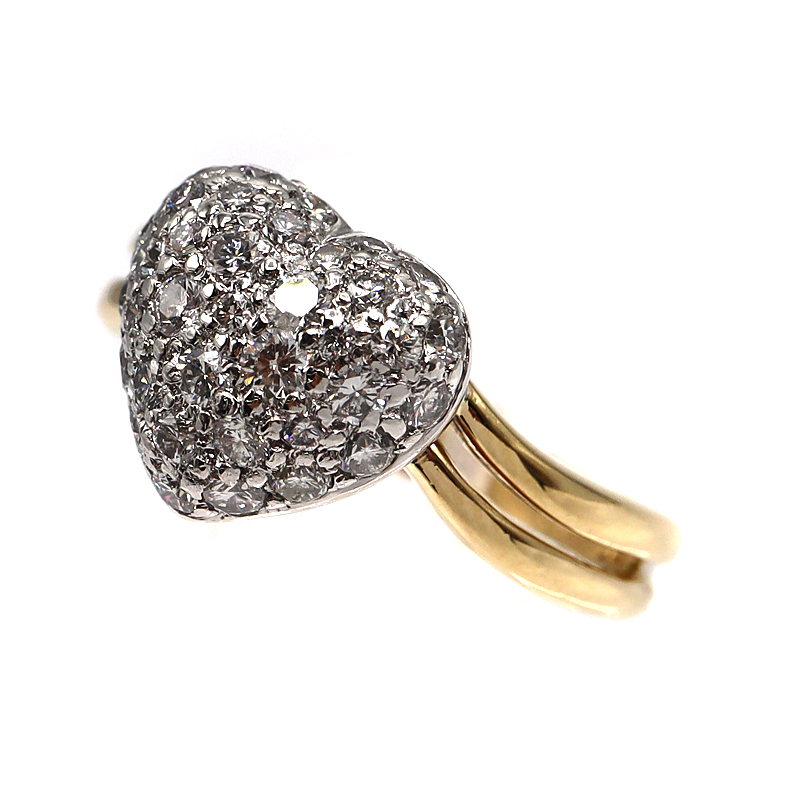 K18 Pt950 D0.81ctハートリング 指輪 イエローゴールド プラチナ ダイヤモンド レディース【中古】