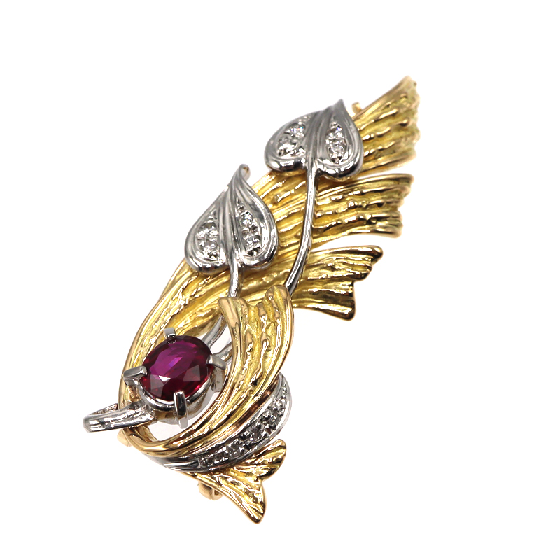 K18Pt900 18金 プラチナ R0.69/D0.10ct ブローチトップ ルビー ダイヤモンド レディース ゴールド【中古】