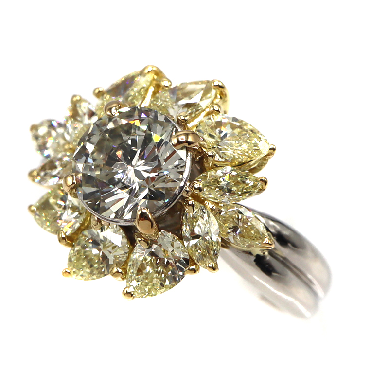 K18 Pt900 D1.058/1.45ctリング 指輪 イエローゴールド プラチナ ダイヤモンド レディース【中古】