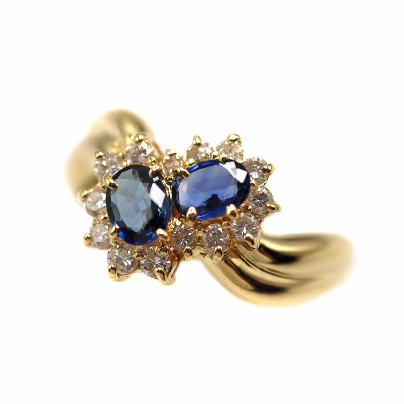 K18 18金 S0.61ct D0.31ctリング サファイア ダイヤモンド 指輪 ジュエリー レディース【中古】