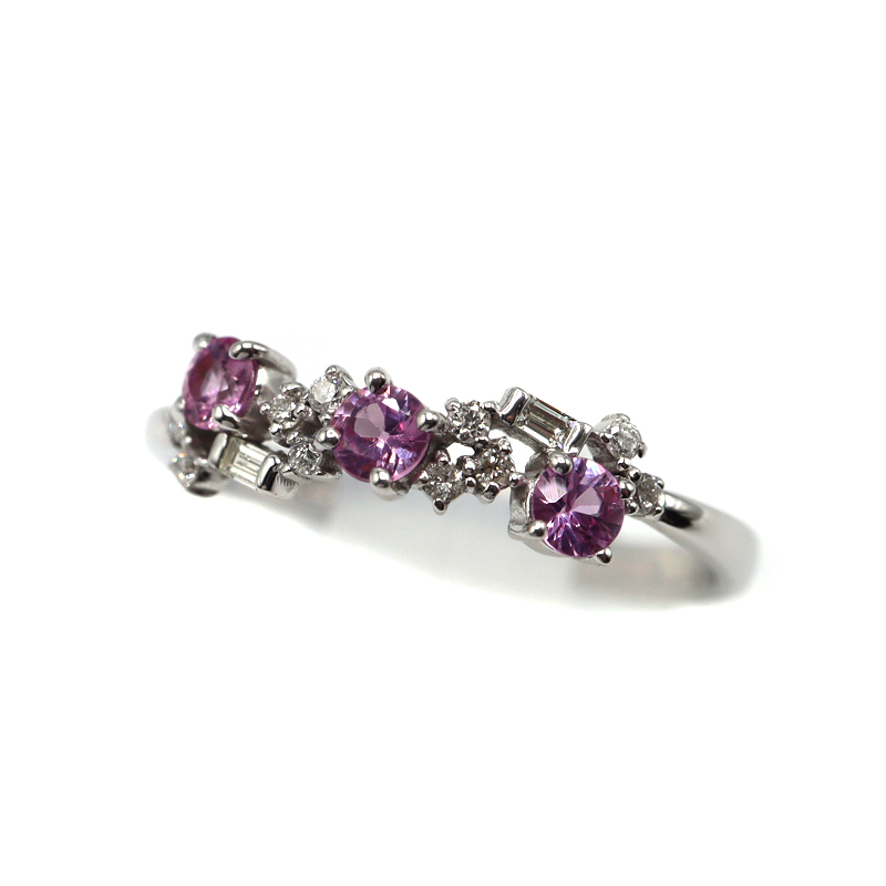 K18WG 18金ホワイトゴールド PS0.31ct D0.10ctリング ピンクサファイア ダイヤモンド 指輪 ジュエリー レディース【中古】