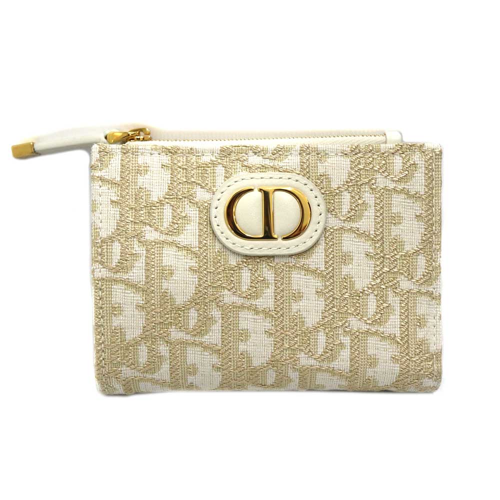 ディオール Dior S2191UQDL01EU 30モンテーニュ ミディアムウォレット 二つ折り財布 レディース キャンバス レザー ホワイト×ゴールド【中古】