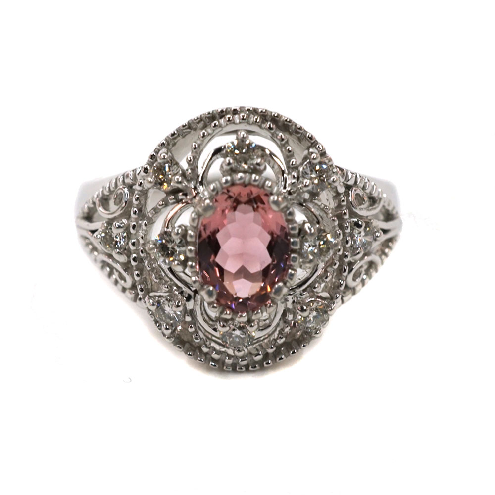 K18WG 18金ホワイトゴールド ピンクトルマリン 0.618ct ダイヤモンド 0.268ct リング 指輪【中古】