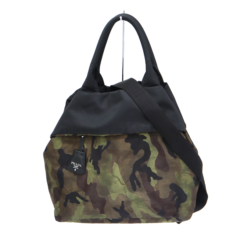 プラダ Prada VA0905 リバーシブルトート ショルダーバッグ ハンドバッグ ナイロン ブラック グリーン カモフラージュ メンズ【中古】
