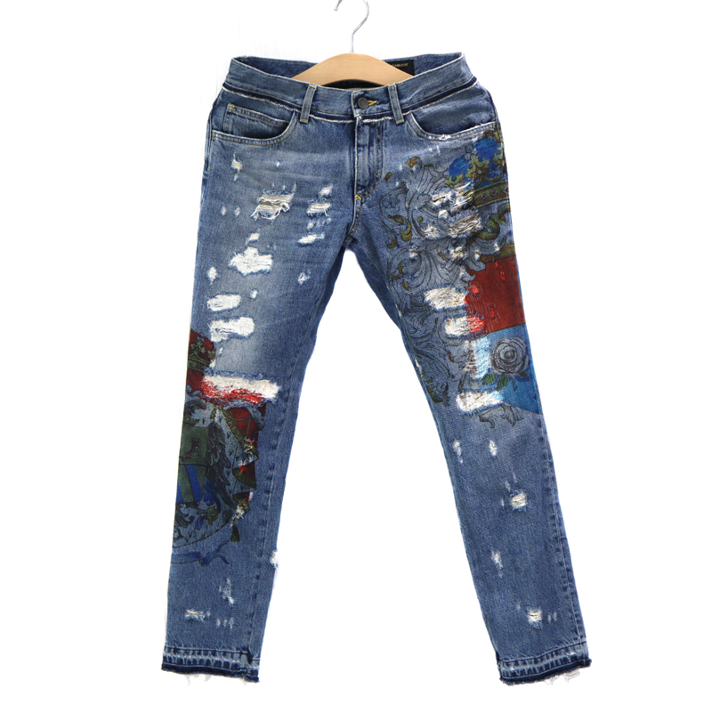 ドルチェアンドガッバーナ Dolce&Gabbana GY4FLD G8V28 エンブレムプリントデニムパンツ ブルー アパレル【中古】