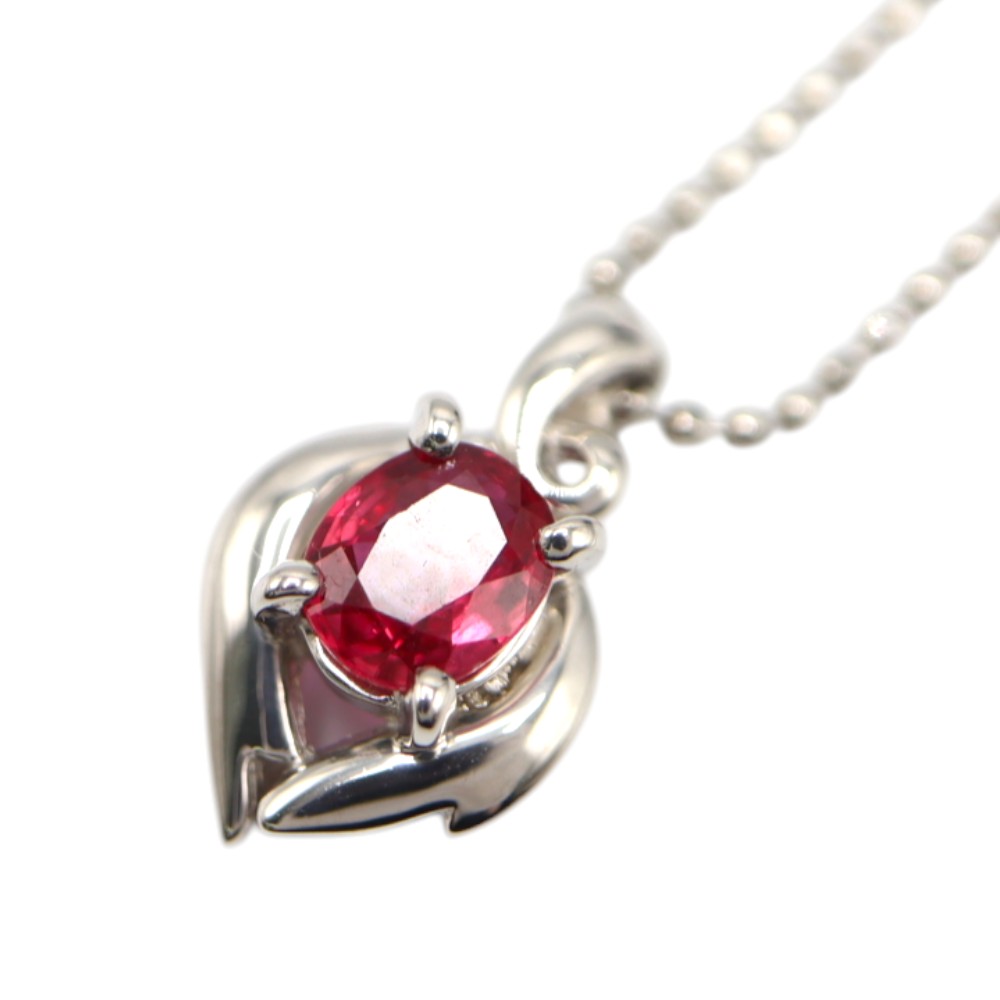 Pt850 プラチナ850 ルビー ネックレス レディース シルバー【中古】