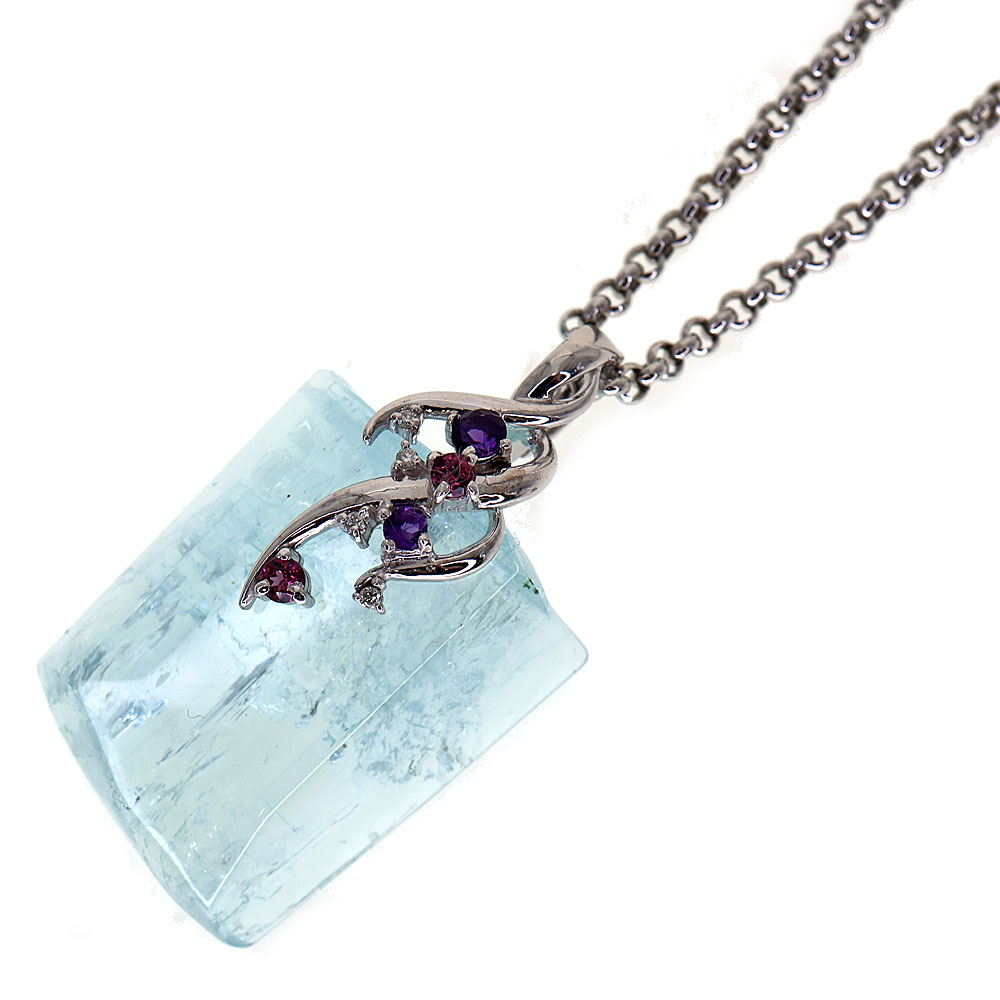 K18WG 18金ホワイトゴールド アクアマリン ネックレス ライトブルー パープル ピンク シルバーカラー【中古】