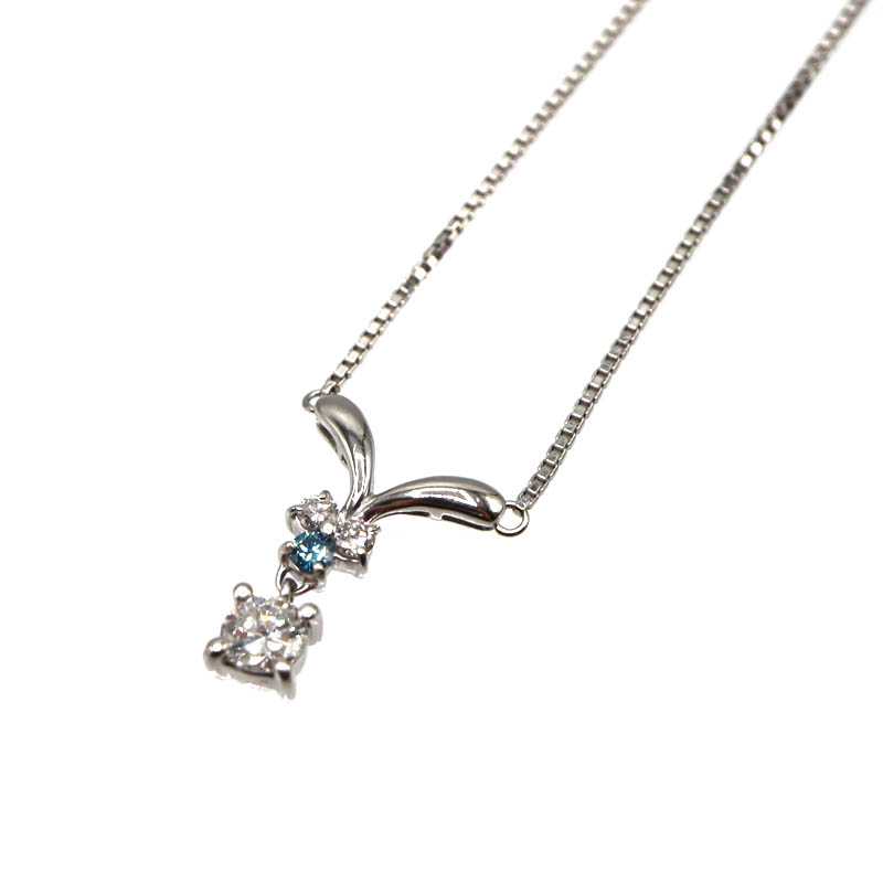Pt850 プラチナ850 BD0.16ct ダイヤ付ネックレス ダイヤモンド ブルーダイヤモンド ジュエリー アクセサリー レディース 【中古】