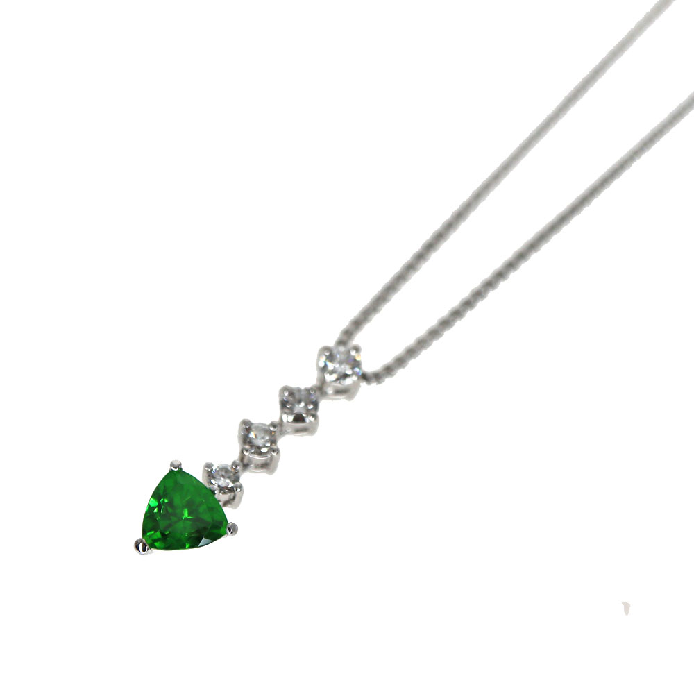 Pt850 プラチナ850 ガーネット ダイヤモンド ネックレス レディース シルバー グリーン【中古】