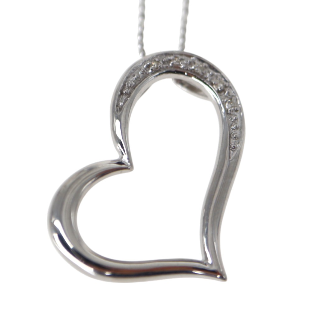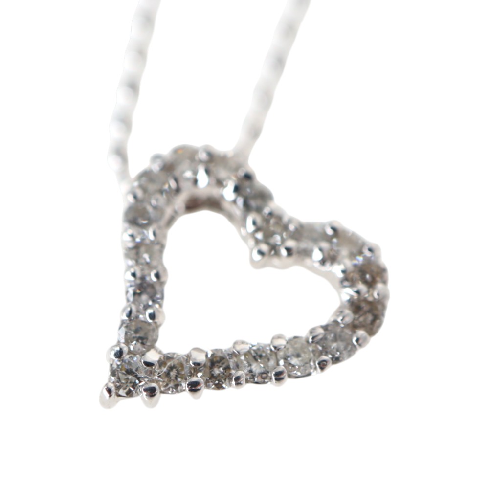 K18WG 18金ホワイトゴールド ダイヤモンド ハート ネックレス レディース 【中古】