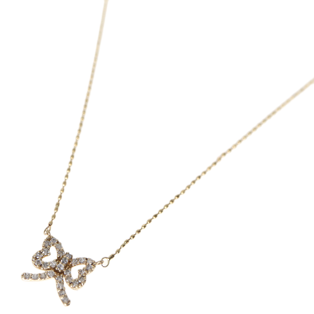 K10YG 10金イエローゴールド ダイヤモンド リボンネックレス 【中古】