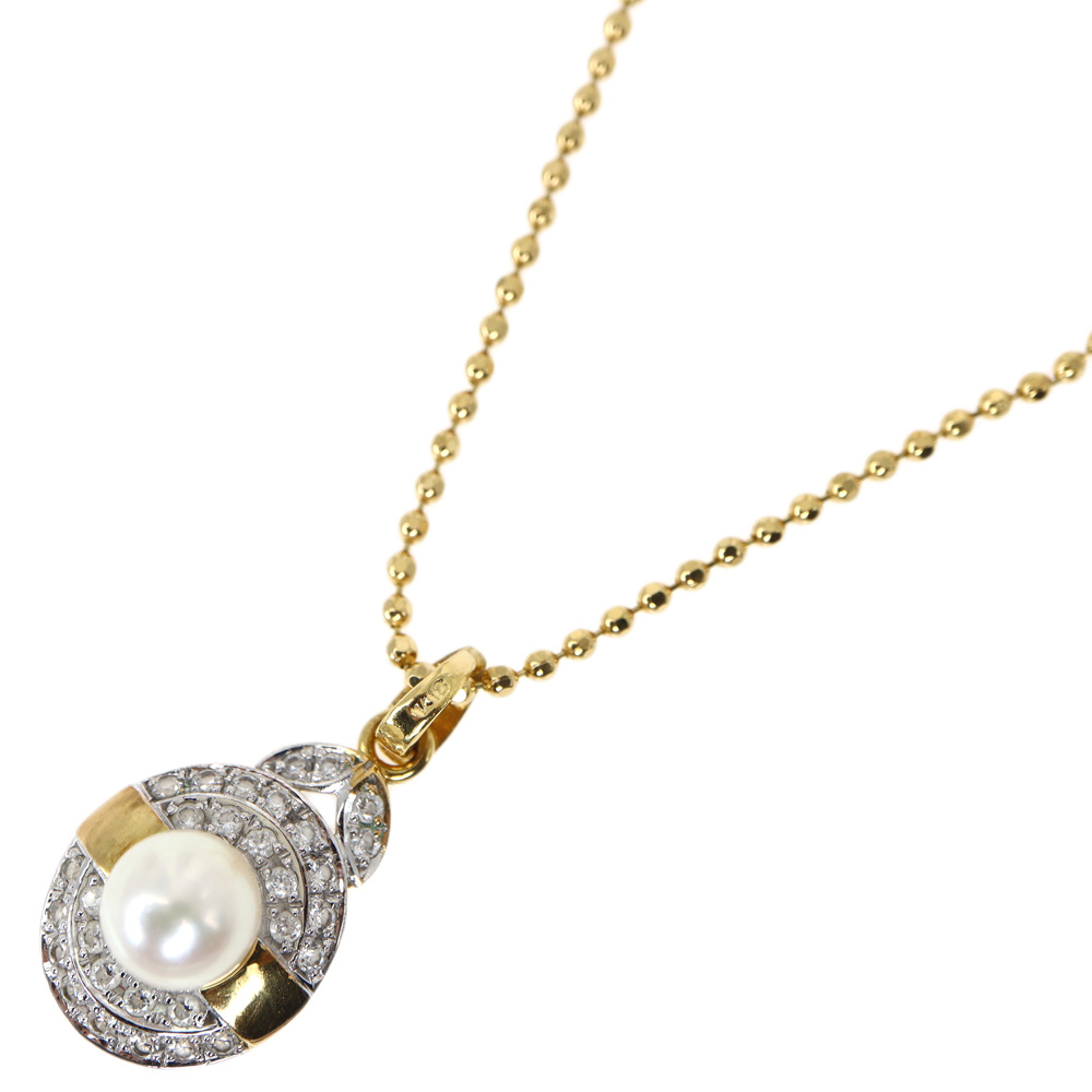 K18YG 18金イエローゴールド パール ダイヤモンド レディース ネックレス ゴールド【中古】