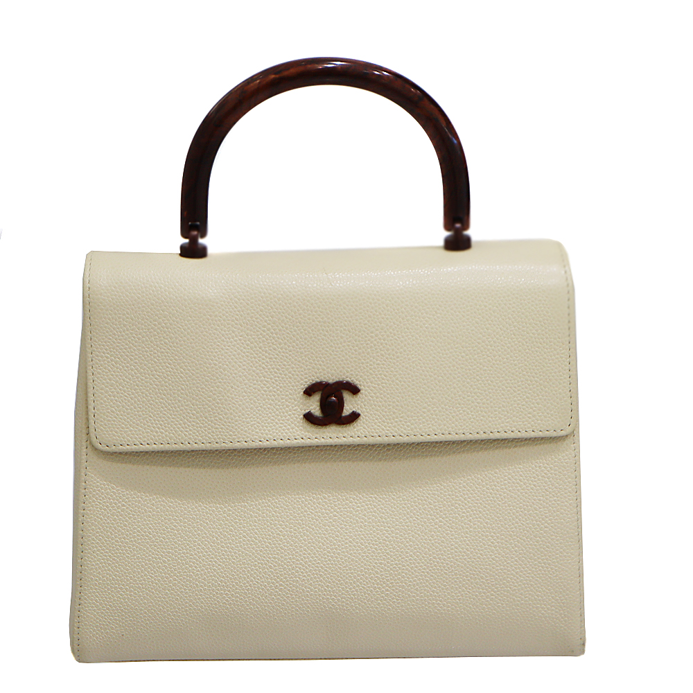 シャネル Chanel ウッドハンドルバッグ ハンドバッグ ブベージュ レザー レディース 【中古】