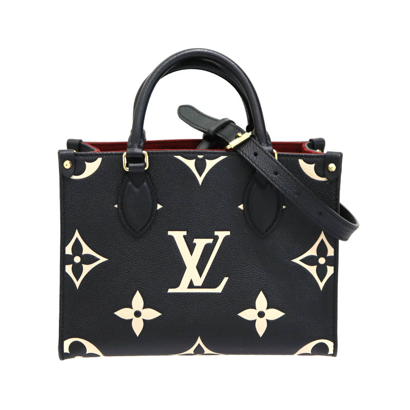 ルイヴィトン Louisvuitton M45659 オンザゴーPM 2WAYバッグ モノグラムアンプラント ブラック ベージュ【中古】