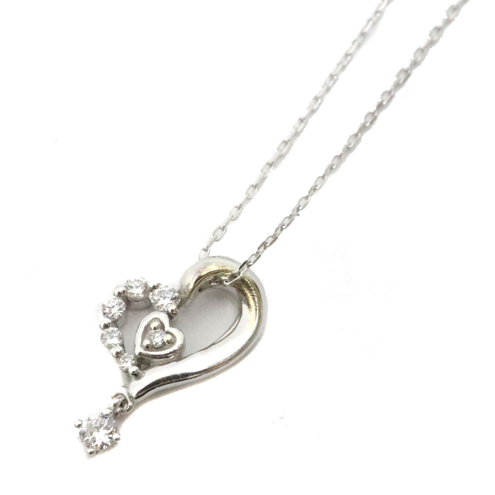 18金ホワイトゴールド K18WG D0.35ctネックレス ハート ダイヤモンド ジュエリー 【中古】