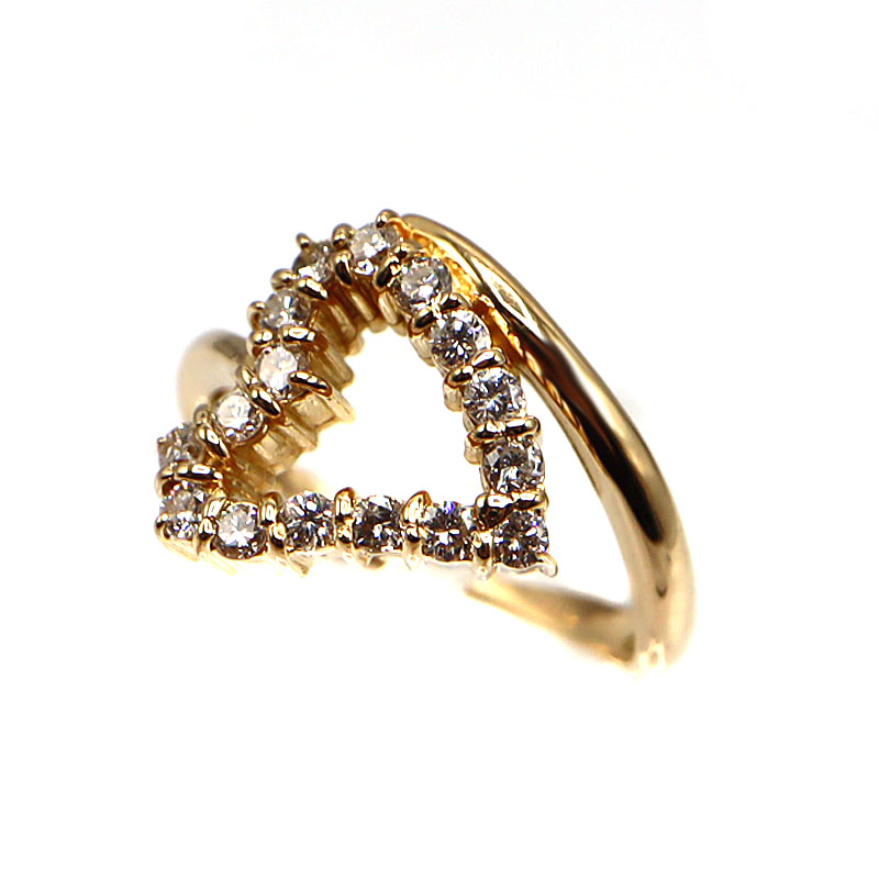 K18 18金 D0.45ctリング ハート ダイヤモンド 指輪 ジュエリー レディース【中古】