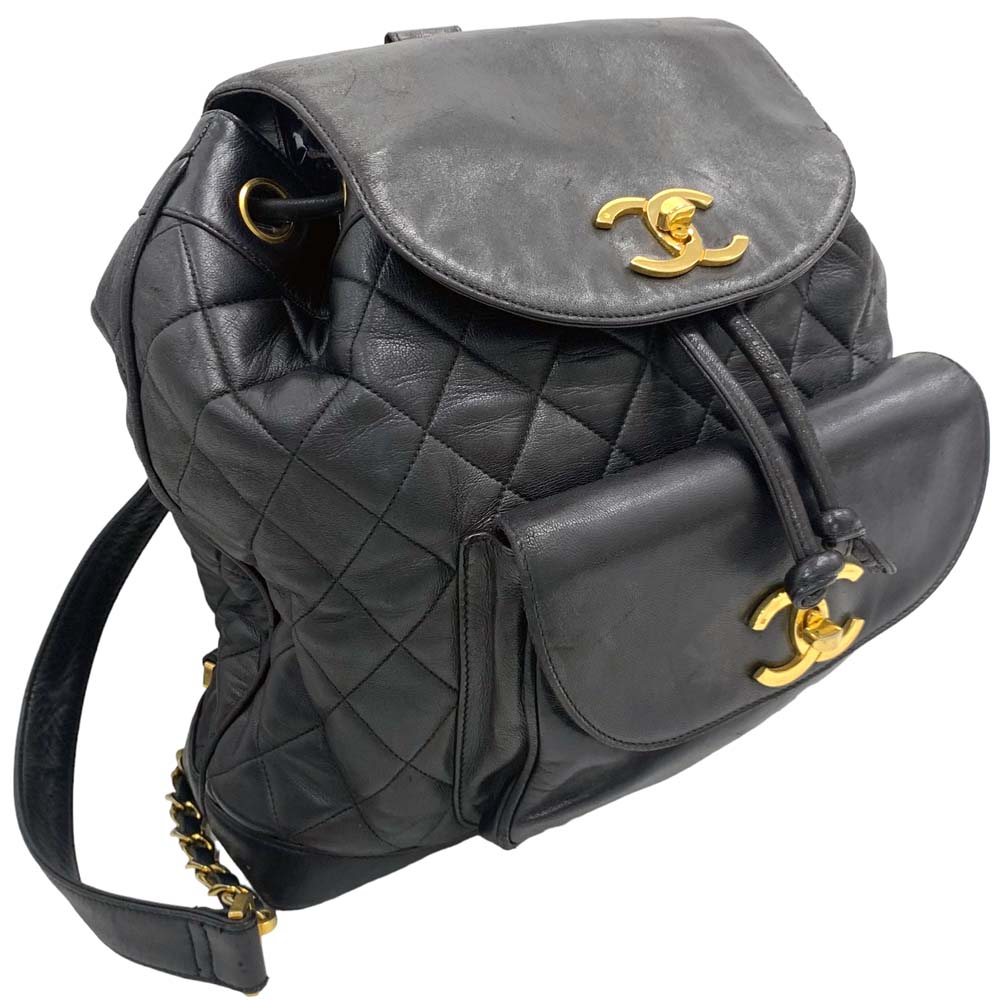 シャネル CHANEL マトラッセ ラムスキン バックパック リュックサック 肩掛け ブラック 黒系 【中古】