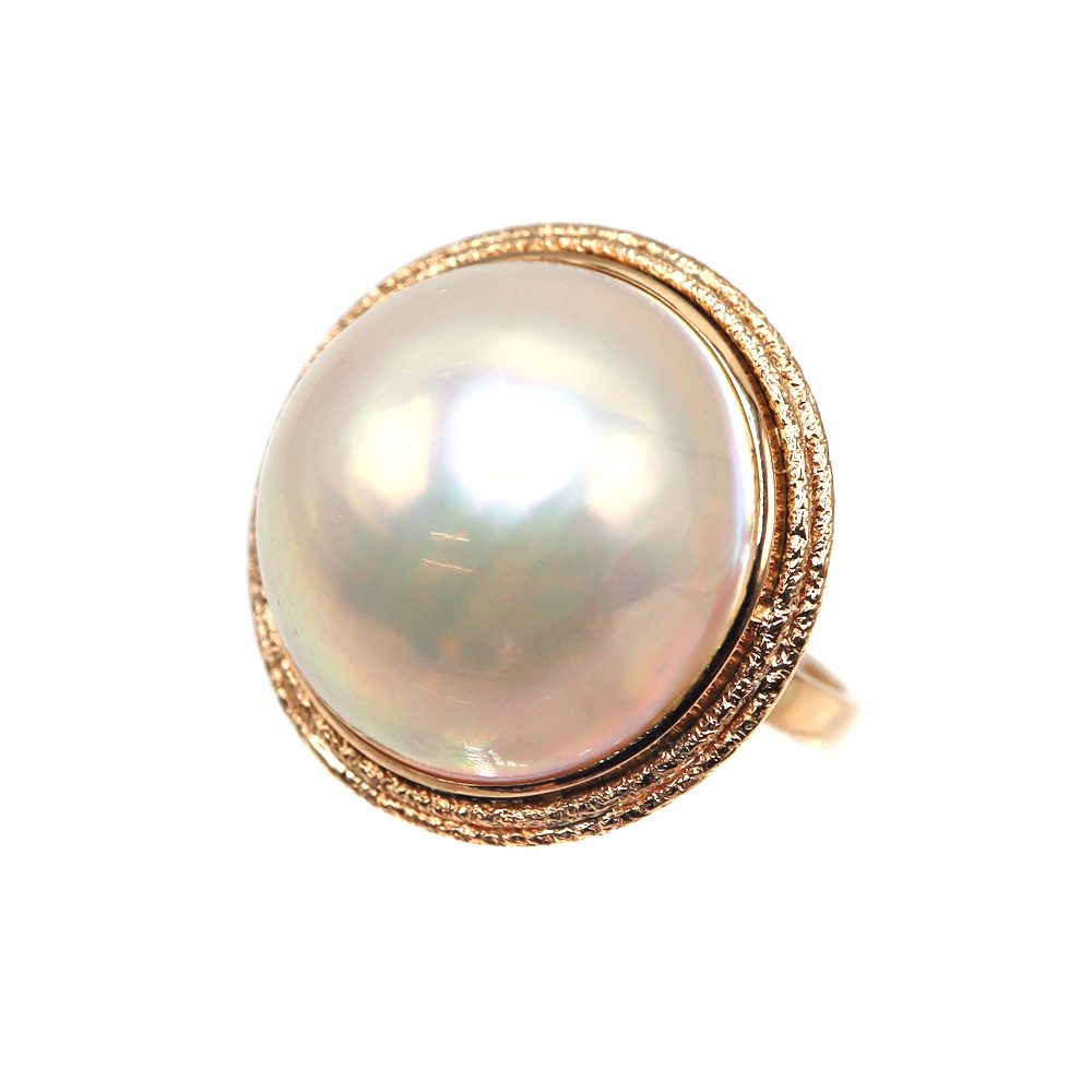 18金 K18 マベパール付リング 指輪 養殖半形真珠 レディース ホワイト ゴールド リング ジュエリー【中古】