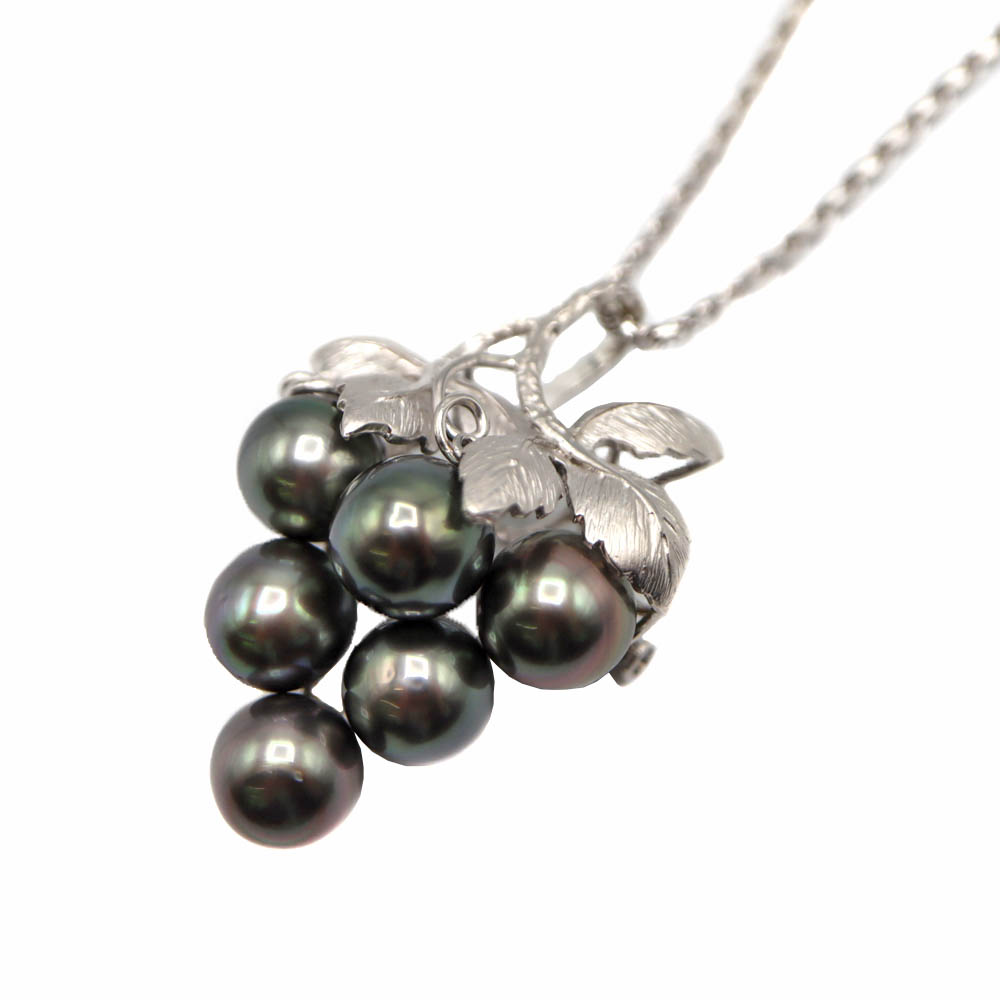 K18WG ホワイトゴールド 18金 ブドウモチーフネックレス ブローチ ブラックパール クロチョウ養殖真珠 レディース アクセサリー ジュエリー 【中古】