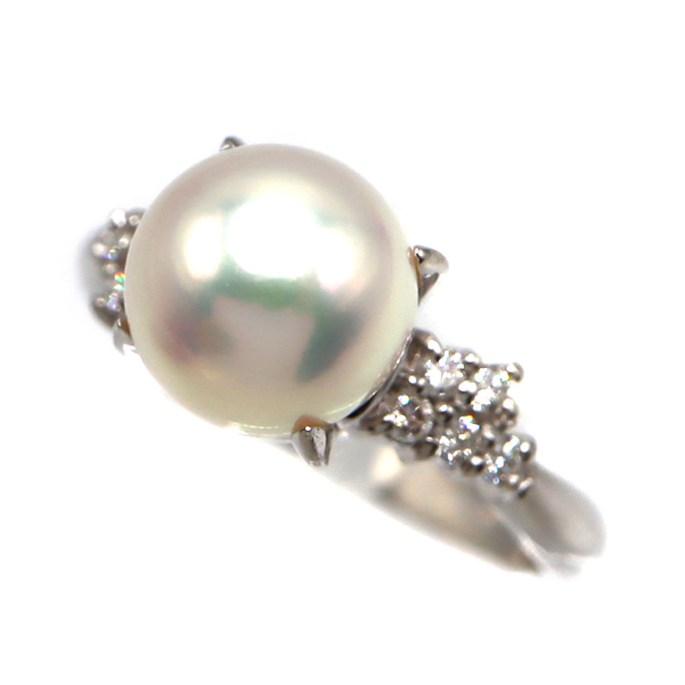 プラチナ900 Pt900 パール/D0.16ct リング アコヤ養殖真珠 プラチナ 指輪 ダイヤモンド【中古】