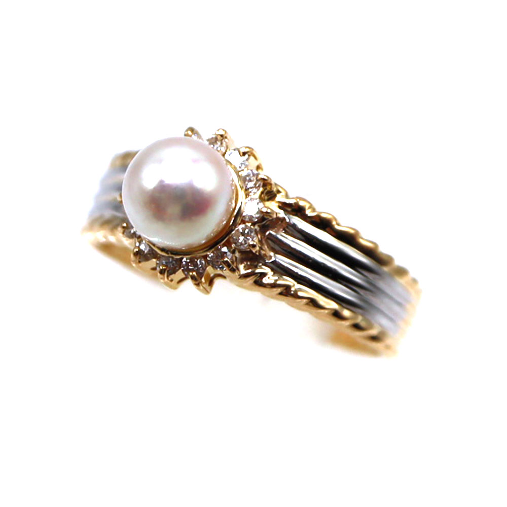 K18 Pt900 パール D0.12ct リング 指輪 ゴールド プラチナ アコヤ養殖真珠 ダイヤモンド レディース 【中古】