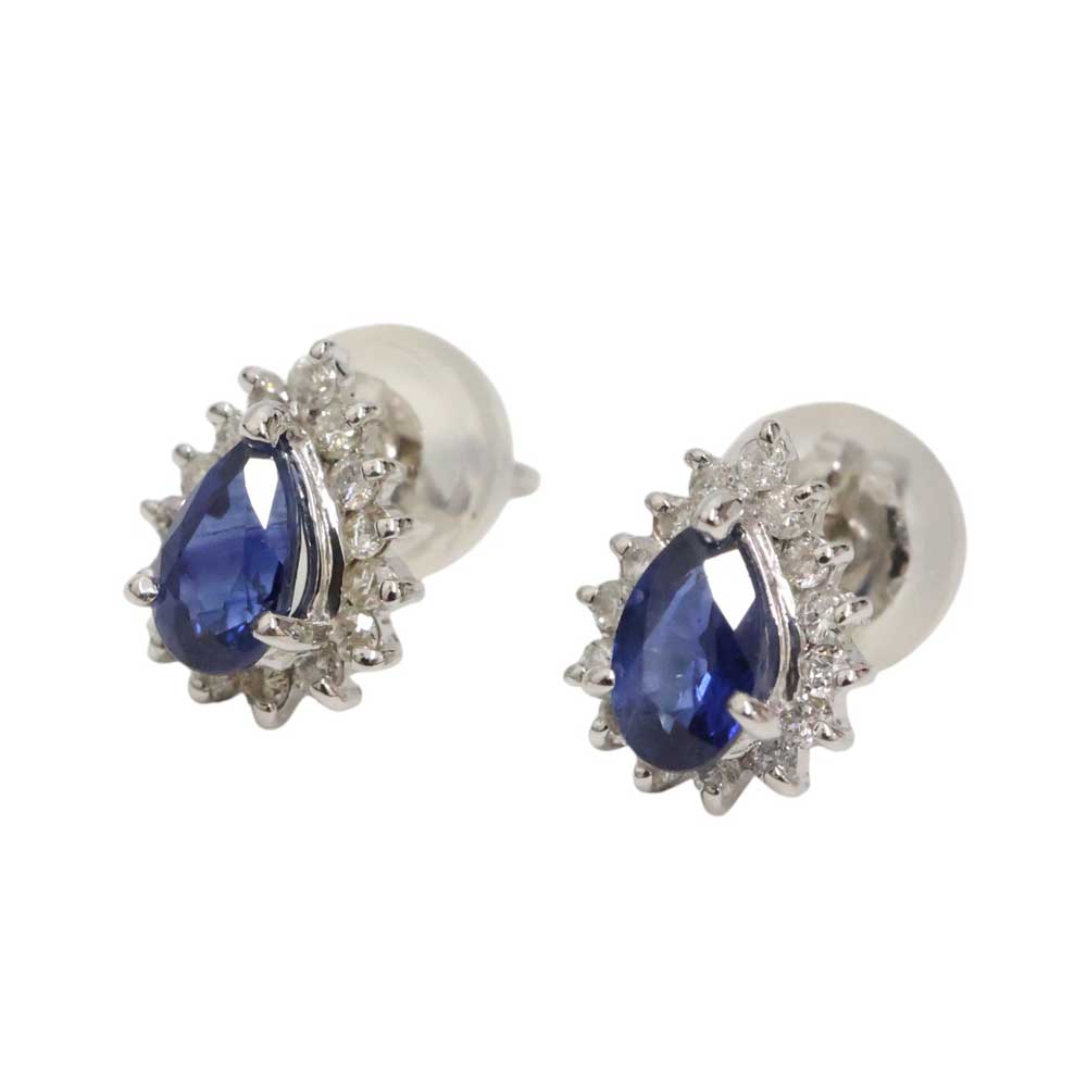 Pt900 プラチナ900 サファイアピアス ダイヤモンド レディース ジュエリー シルバーカラー【中古】