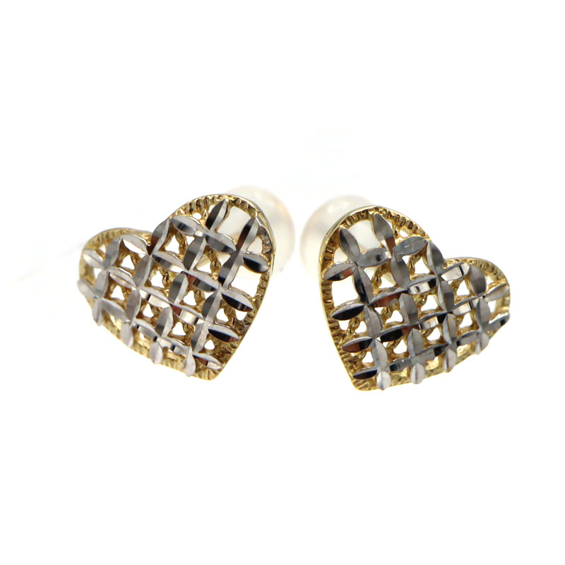 K14 14金 ゴールド ハートピアス イエローゴールド ホワイトゴールド レディース【中古】