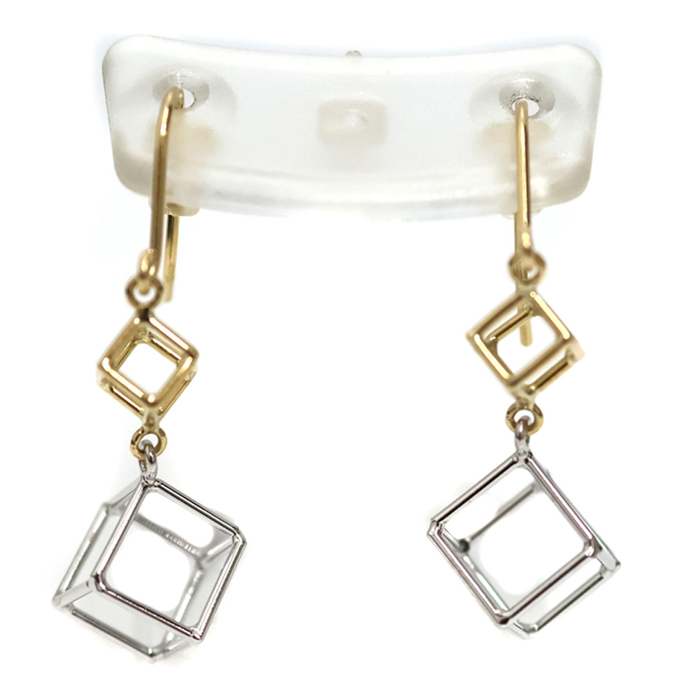 K18/K18WG 18金/18金ホワイトゴールド キューブピアス アクセサリー イエローゴールド シルバーカラー【中古】
